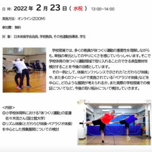 体操カンファレンス報告書(第17回体操研究集会) 投稿日 2022年2月17日 著者 office カテゴリー Info カテゴリー Topic カテゴリー 体操研究集会 全3ページ 2021-conference-report 報告書(PDF) 開催要項(PDF) pickup